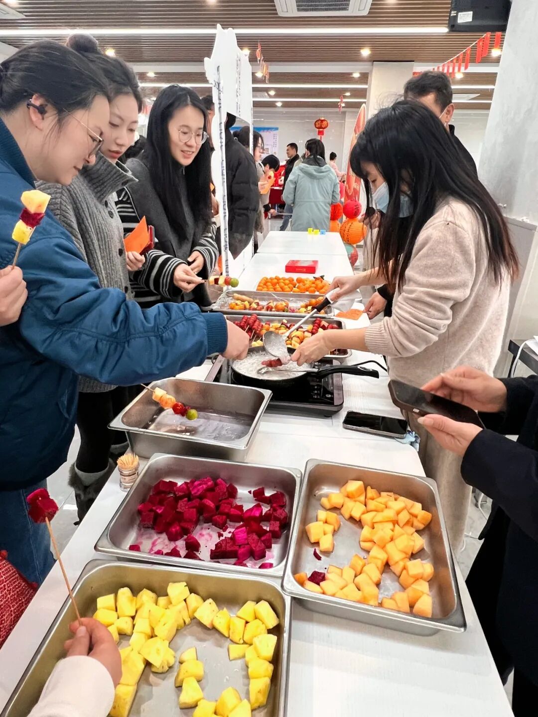 本次活动设计了五大特色环节,融合了民俗体验与趣味互动:在“福钓汤圆”区,员工们手持垂钓道具,在欢声笑语中“钓”取汤圆,寓意钓福气、纳吉祥;“元宵灯谜”区热闹非凡,涵盖民俗知识、生活常识、趣味问答的各式谜题,引发了大家的踊跃竞猜;“巧制花灯”环节中,大家利用材料包亲手制作花灯,创意十足,成品成为了独一份的节日纪念;“手作团圆”区里,大家亲手搓制汤圆,在揉、捏、团的过程中体验手工乐趣,感受“团圆”真谛;“糖串迎春”环节则唤起了童年记忆,一起亲手制作糖葫芦,一口酸甜解锁浓浓年味。